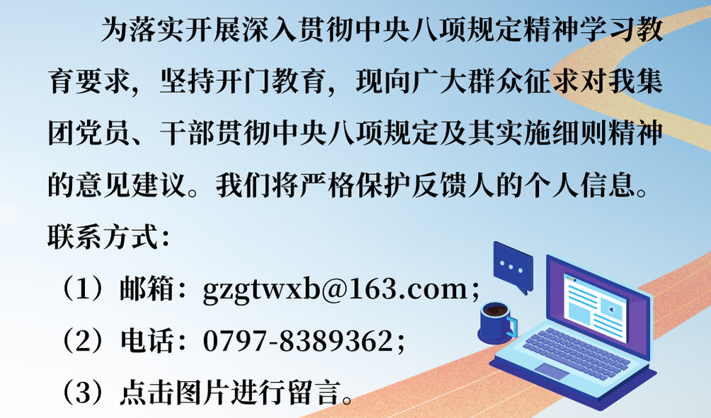 | 4 | 贛州市國投集團黨委舉辦深入貫徹中央八項規(guī)定精神學(xué)習(xí)教育讀書班暨理論學(xué)習(xí)中心組集體學(xué)習(xí) | 2025-04-10 |